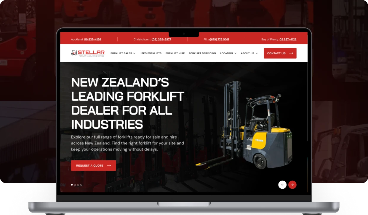 Stellar Machinery’s new digital framework delivered visibility and performance at scale. With a conversion-first website and location-optimised Google profile, the business now dominates forklift searches across New Zealand and generates measurable leads every week.
