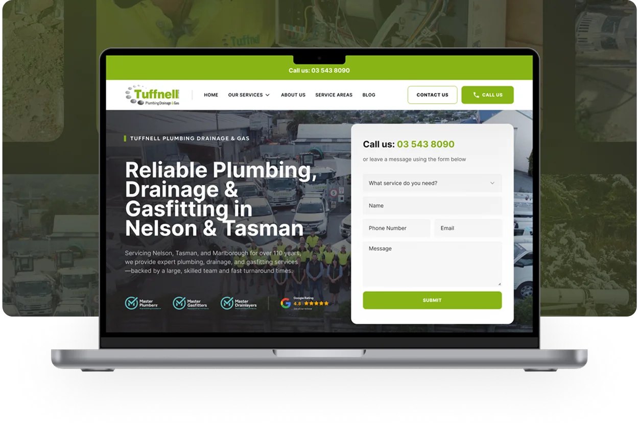 Despite being one of Nelson’s most established plumbing companies, Tuffnell Plumbing was losing ground online. Competitors with modern websites and stronger SEO were capturing local visibility, while Tuffnell’s outdated marketing made them harder to find.